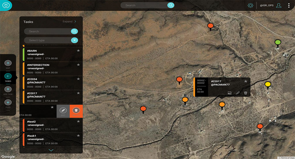 Metis generated ISR tasks are transmitted machine-to-machine directly to MMC, drastically increasing mission effectiveness. ISR task and aircraft position status is easily tracked by all Metis users. Command elements can modify or cancel task requirements in seconds, allowing the MMC crew to instantly adjust to emerging requirements.