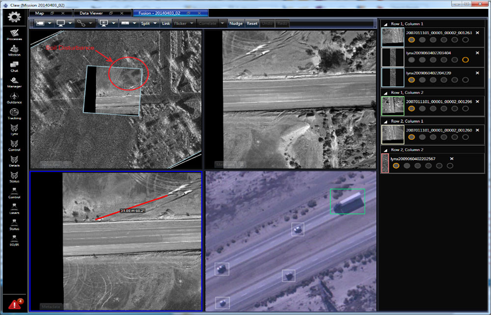 The STARE System offers automated tools that enables the rapid creation of actionable intelligence with less manpower. Processing including change detection and data mosaicking occurs automatically, enhancing the efficiency of the STARE user. STARE's built-in tracker integrates multi-INT data such as ELINT, MTI, and full-motion video to correlate the separate feeds into a single track to greatly reduce the number of targets the user must inspect. STARE also automatically classify objects and detects behaviors of interest by leverage Artificial Intelligence (AI). STARE's open architecture allows for integration of third party data processing capabilities to further automate data processing and exploitation.